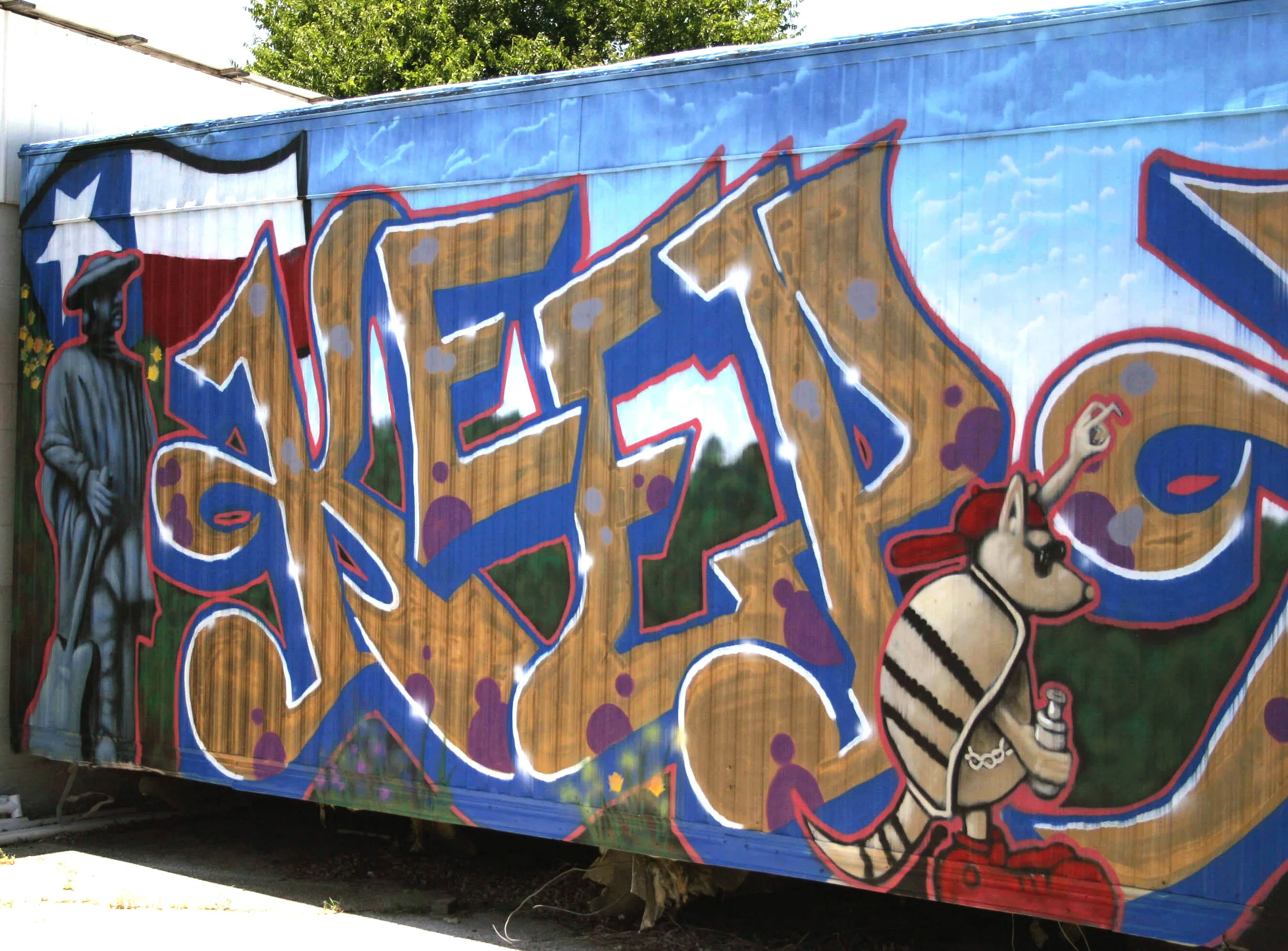 "Outhouse Designs 2 mural" Keep Austin Weird themed - Outhouse Designs office mural featuring an armadillo character rocking out - painted in Austin, TX by Tim Scott